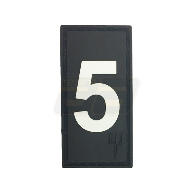 Velcro backed, dimensions: 50 x 25mm. Suitable for Pitchfork Number 5 Patch in black.