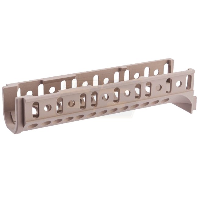 Enhance your AK rifle with the 5KU B-10L Sport AK Handguard in Tan. This 160mm aluminum handguard only weighs 80g and features the Zenitco style clamp-on mounting system. Compatible with AK models from LCT & GHK (excluding PP-19 and AKS74U).