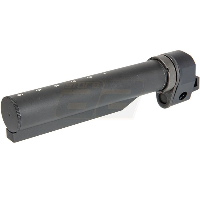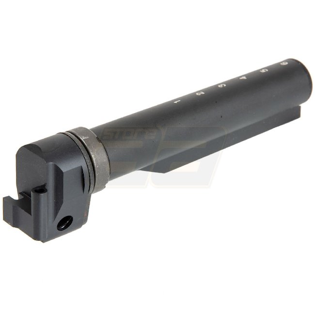 This 5KU folding stock adapter mounts an M4 stock on your E&L AK. 200mm length, 180g weight. Aluminum material. Compatible with E&L AK variants with folding stocks.