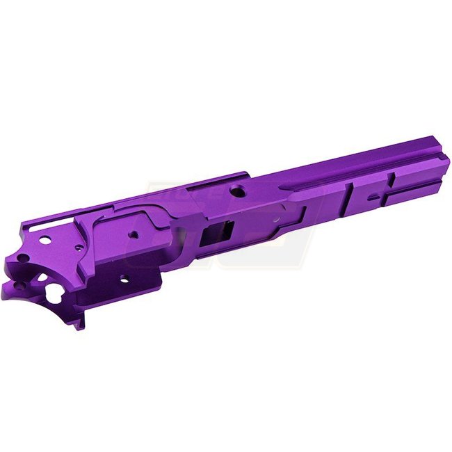Upgrade your Marui Hi-Capa 4.3 GBB with this Purple Aluminum Frame Blank Rail Version from 5KU. Lightweight at 90g, crafted from high-quality aluminium alloy.