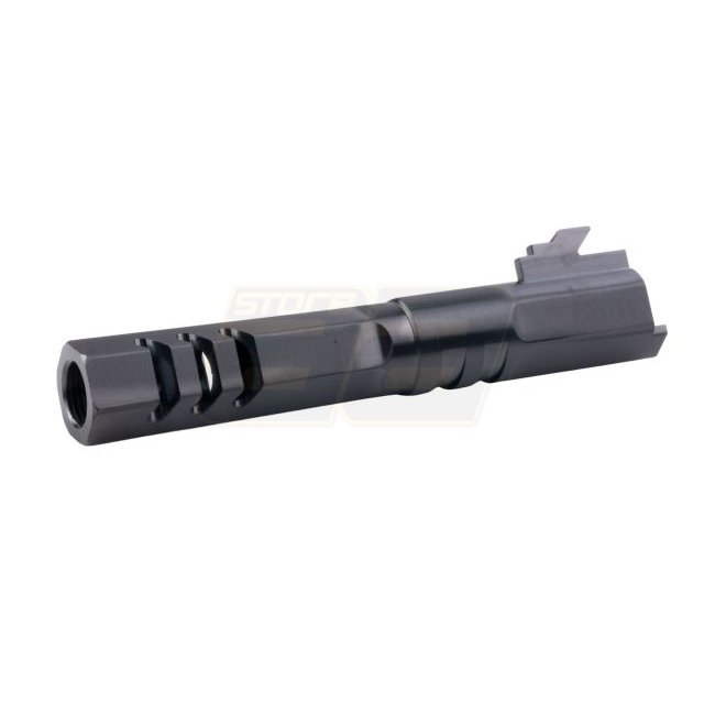 Upgrade your Tokyo Marui Hi Capa 4.3 GBB Airsoft pistol with the durable and sleek 5KU Stainless Steel Outer Barrel. CNC machined for enhanced performance and featuring V2 hexagonal ported design for improved airflow and aesthetics. Easy installation with