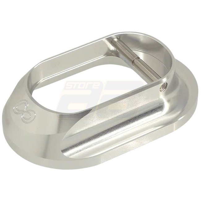 The 5KU Marui Hi-Capa GBB XL Infinity Aluminum Magwell in silver is designed for smoother and faster magazine reloads. Its lightweight CNC-machined aluminum construction enhances durability while maintaining sleek aesthetics for competitive airsoft player