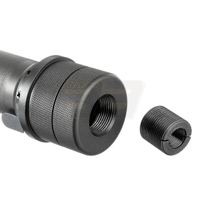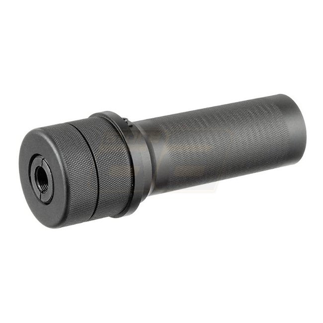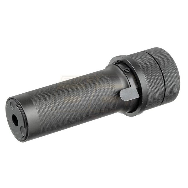 The 5KU PBS-1 is a robust suppressor designed to work ideally with AK style Airsoft guns. This particular PBS-1 has a Spitfire Tracer unit installed and can be switched on and off simply by pushing on the plate on top of the suppressor, making it very simple to use. This PBS-1 has a 14mm CCW threading.