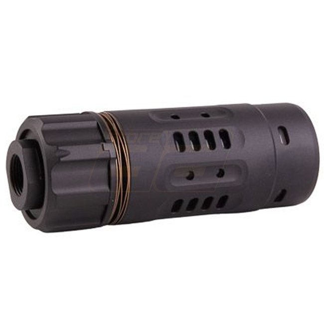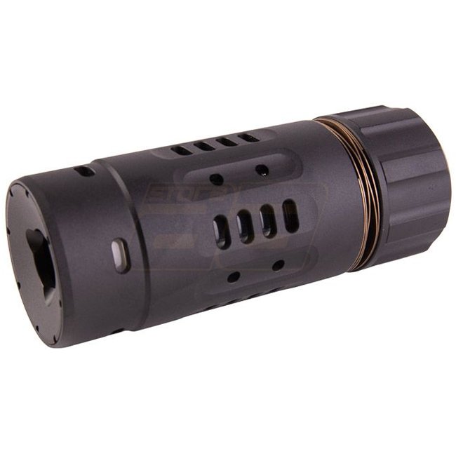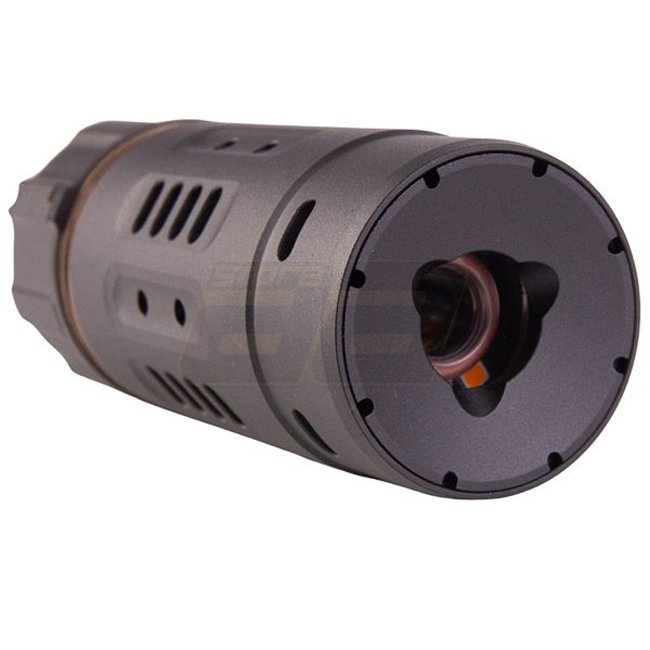 This 5KU Pyro Style Tracer in Black features realistic simulated muzzle flash to enhance your airsoft experience. Designed for use with green tracer BBs, it includes a convenient USB-C charging port. Crafted from lightweight aluminum, this tracer unit is