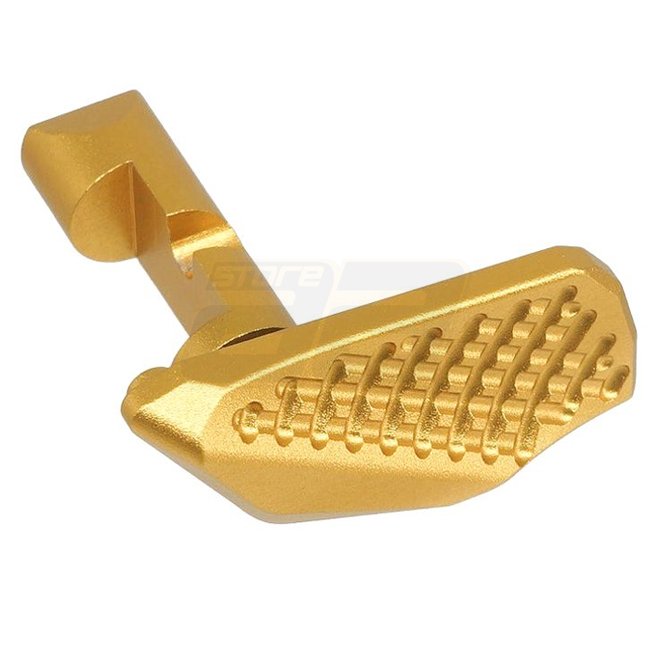Enhanced takedown lever with integrated thumb rest for improved weapon handling and shooting control on P320-based gas blowback pistols. Ideal for dynamic shooting or precision aiming with increased surface support. CNC-machined aluminum ensures durability and precise fit.