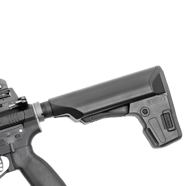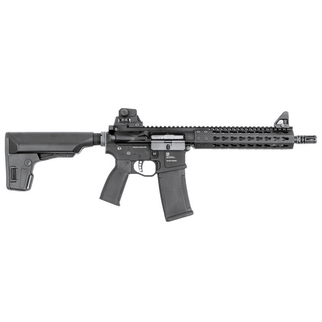 This CQB model with its ultra-lightweight 9 inch Keymod compatible rail and 10.5 inch barrel is the perfect airsoft gun for handling in any confined space and close proximity combat environments. The PTS Mega Arms MKM CQB standard equipment also includes PTS’ proprietary design PTS Enhanced Polymer Grip, Enhanced Polymer Magazine, and Enhanced Polymer Stock.