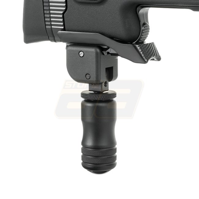 Action Army T10 Sniper Rifle Monopod: Aluminum / Steel build, POM tip, 65+25mm length, foldable for space-saving, fits 20mm rails.