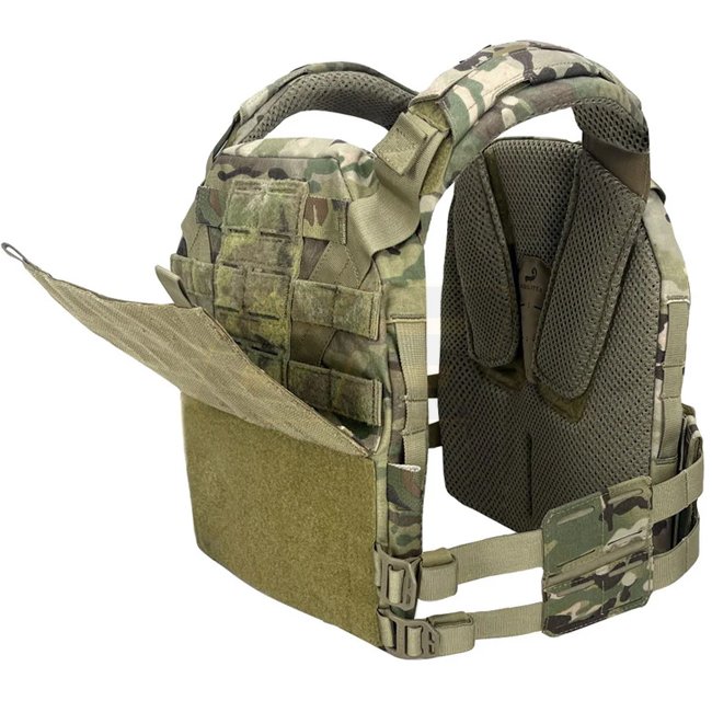 Agilite K-Zero Plate Carrier in Multicam - M. Cordura material, weight 790g. V design for weight distribution, low profile cummerbund, built-in cable management. Supports various plate sizes. AMAP III Assault Pack Compatible.