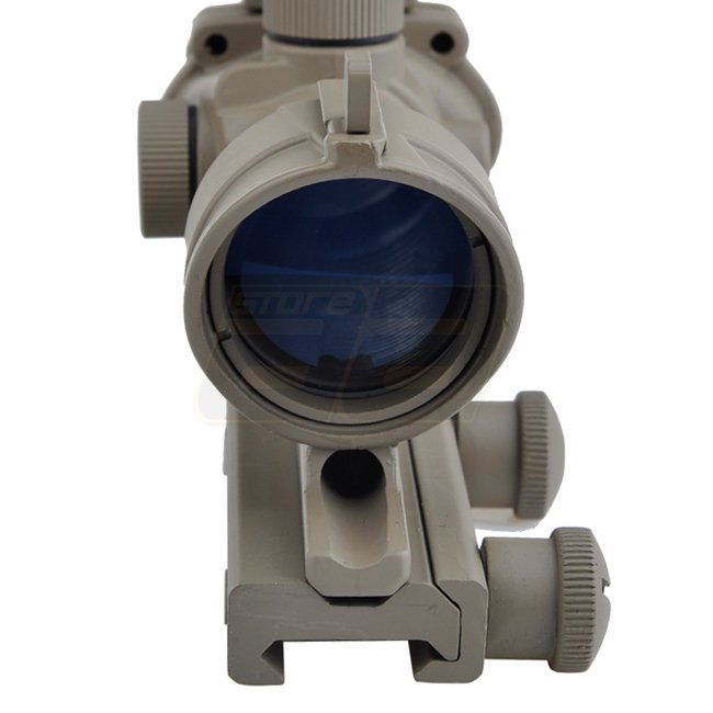 Aim-O ACOG 4x32 Scope & Mini Red Dot - Dark Earth is a versatile optical device suitable for precision shooting. It features 4x magnification, 32mm lens diameter, red illumination, and a unique reticle with crosshair & dot, windage & elevation adjustable.