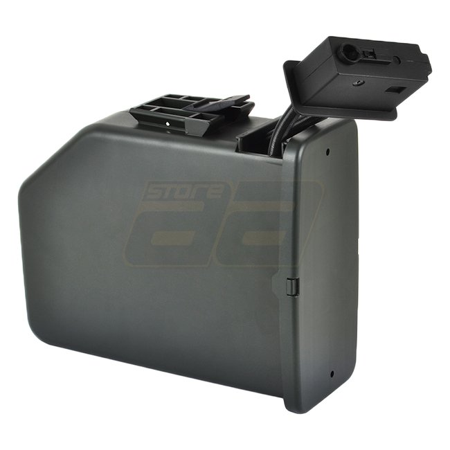 A&K M249 2500rds Sound Activated Electric Box Magazine - Olive. 2x AA batteries required (not included).