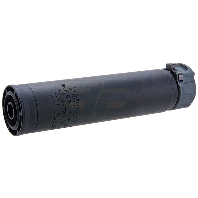 Angry Gun Socom556 RC3 Dummy Silencer & Flash Hider 14mm CCW in Black color, includes 4-Prong SF Flashhider, made of Aluminum/Steel.