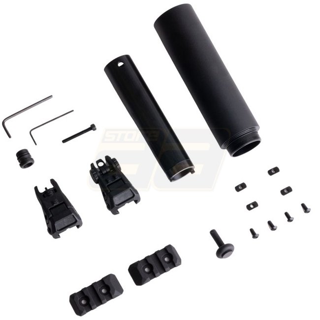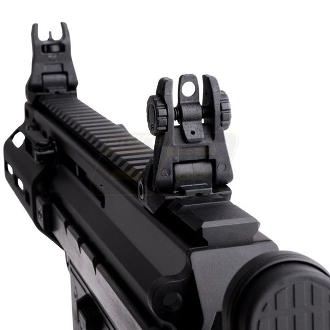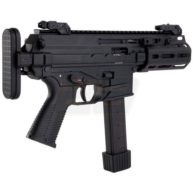Up top, the APC9K-SD2 features a full-length 1913 Picatinny rail for all of your optic mounting options. The controls are pretty simple, as they are all ambidextrous. If you've ever used an AR-15/M4, SCAR or BREN-2 before, you'll get used to it pretty easily. Internally, the gun comes pre-installed with a 6.03mm precision ground inner barrel for exceptional accuracy right out of the box, as well as a TDC direct pressure hop-up unit compatible with Tokyo Marui specification hop-up bucking to ensure reliable shot-to-shot consistency. The gun handles very well, with quick, crisp recoil pulses. The trigger is very crisp and tactile, with the reset being quite pronounced. Aesthetically, the gun looks great and elegant with its all-black and compact build. The retractable stock operates easily and is rock solid in its locked position. The weapon comes with a set of IMI front and rear flip up sights, 2 additional aluminum MLOK Picatinny rail attachments, and a steel 12mm to 14mm CCW thread adapter for advanced customization options. The Archwick APC9K-SD2 uses a standard AR style pistol grip, so you can swap it out for a GBB pistol grip of your choice if needed.