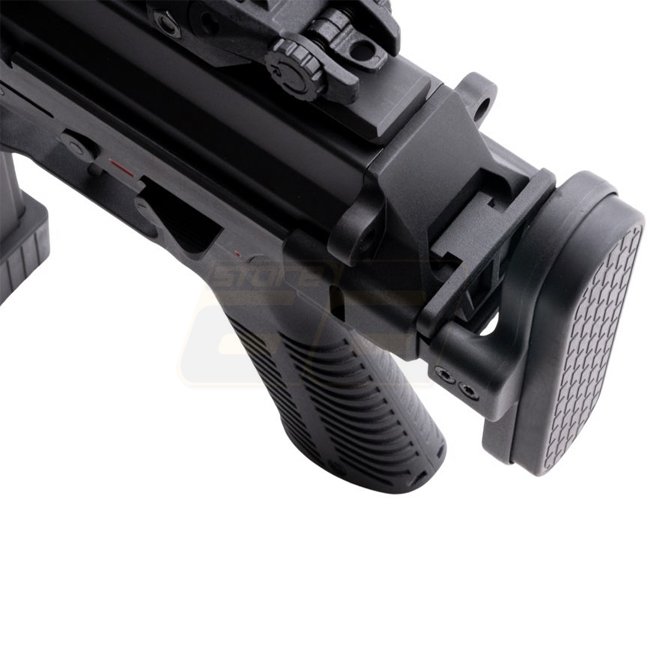 Aside from being a complete 1:1 replica of the original, this airsoft submachine gun is made from high quality materials. The upper receiver, MLOK handguard and bolt are made from CNC machined 6061-T6 aluminum and finished with a durable MILSPEC Type III hard anodized coating for added durability, while parts like the stock and trigger mechanism components are made from CNC machined S45C steel, making this an incredibly tough replica that you can use hard and fast.
