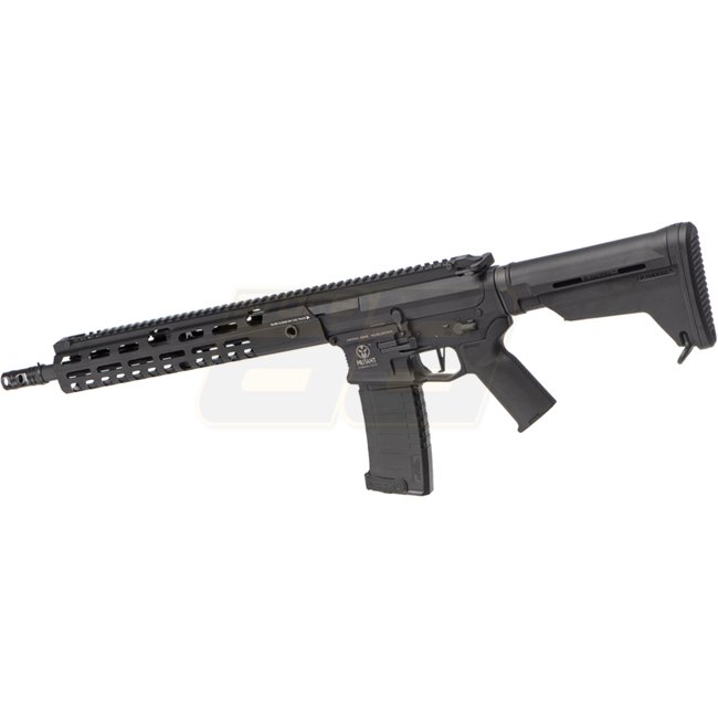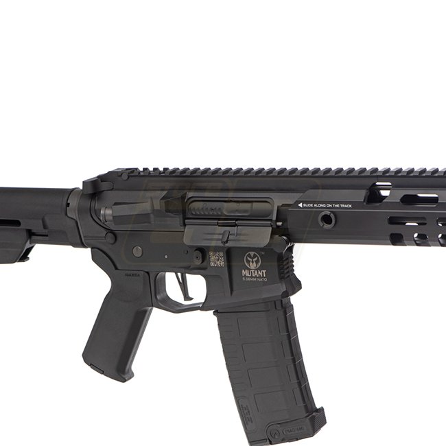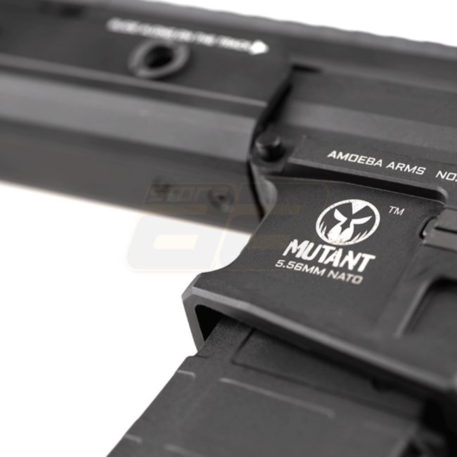 Ares AMM13 Mutant EFCS AEG - Black is a high-quality electric airsoft gun with a metal gearbox, MOSFET, and long-type motor. It has a magazine capacity of 140 rounds (6mm), a length of 820-890mm, and a weight of 2600g. The gun features a 385mm inner barre