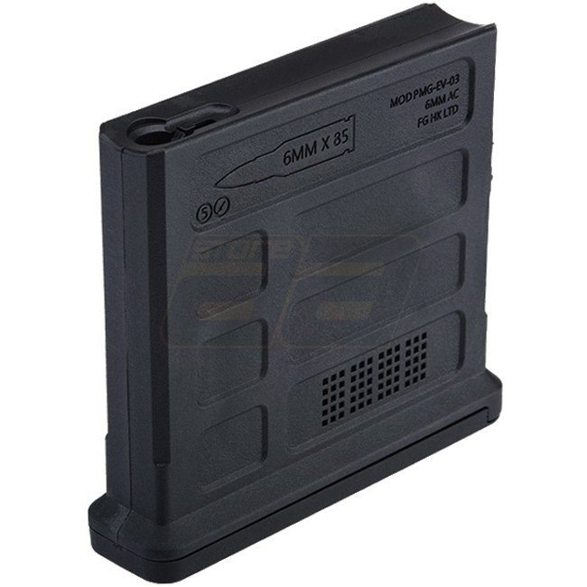 Suitable for Ares EMG Helios EV01 Spring Sniper Rifle, compatible with 85 rounds. Durable black magazine.