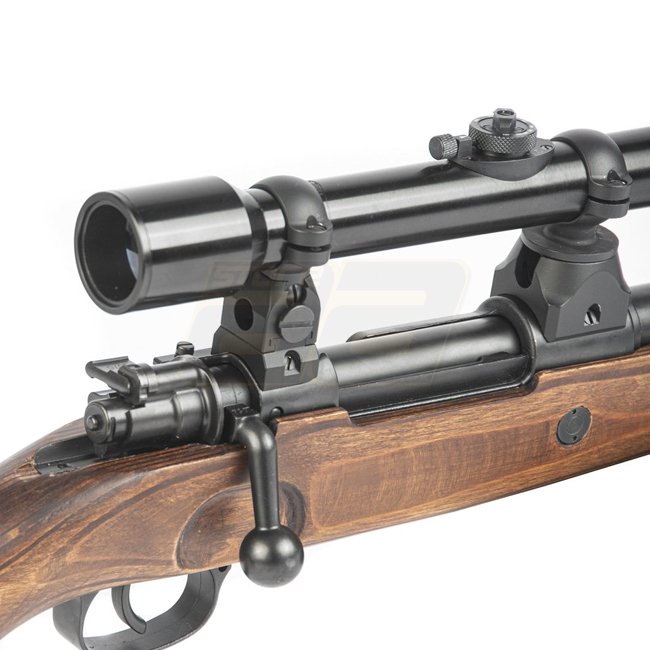 The ARES Kar98K is a faithful replica of this legendary rifle, this particular model comes with a ZF 39 style scope. Not only that the gun's metal parts are 95% made of stainless steel, it also has a really nice laminated wood stock giving it a very rugged feel. Much like the real steel gun, the ARES Kar98K also features a smooth action, something this gun was well known for.
