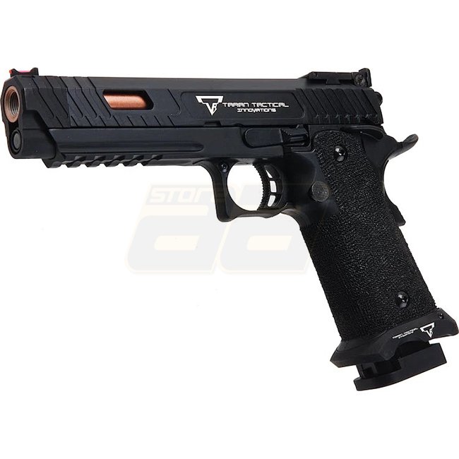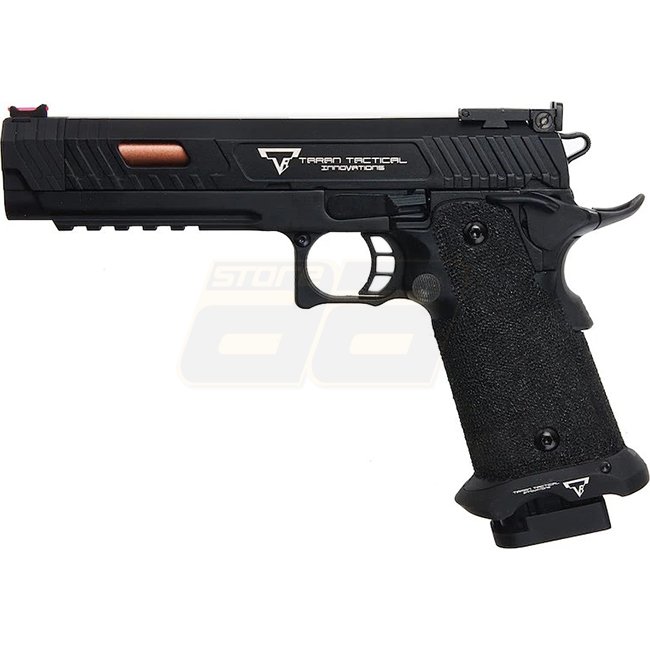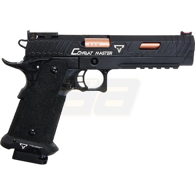 High-quality Army Armament TTI JW3 Combat Master Gas Blow Back Pistol in Black color with metal/polymer construction. Includes a 30-round magazine, 265mm length, 1060g weight, 110mm inner barrel, 300-320 FPS muzzle velocity, Semi Auto shooting mode, 41.16