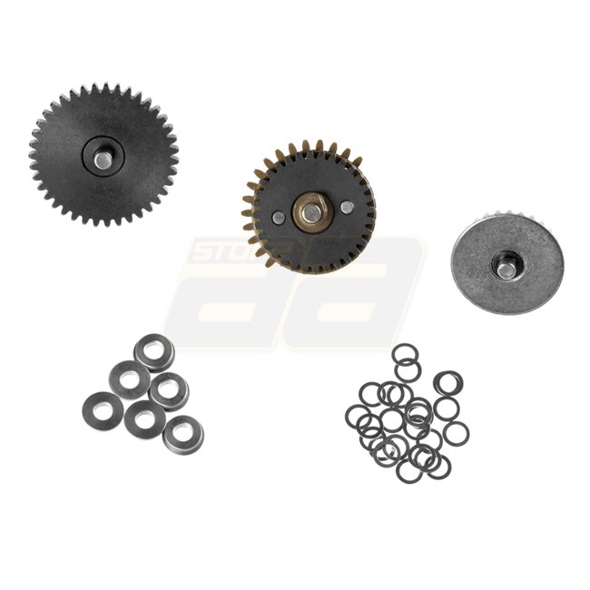 Upgrade your BD Custom 18:1 gearbox with this improved 4mm axis gear set for smoother and more reliable performance. Perfect for enhancing your airsoft gun's precision and efficiency.