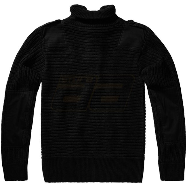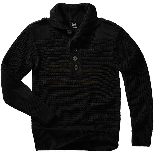 Stylish Brandit Alpin Pullover in Black, size 3XL combines comfort and durability with classic Austrian alpine design. Soft knit, reinforced elbow & shoulder parts, high collar, and epaulettes. 50% acrylic / 50% cotton for a cozy feel. Perfect for any out
