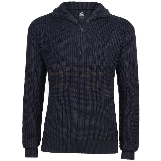 Stay warm and stylish in the Brandit Marine Pullover Troyer. Made from elastic knit material with a high-closing, thick collar with zipper, knitted cuffs on sleeves and waist. 100% polyacrylic. Perfect for chilly days.