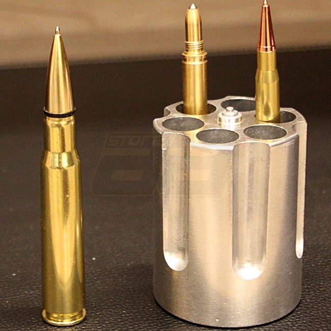 Show’em you mean business when you draw your pen out of our Revolver Chamber Pen Holder.