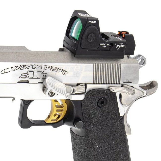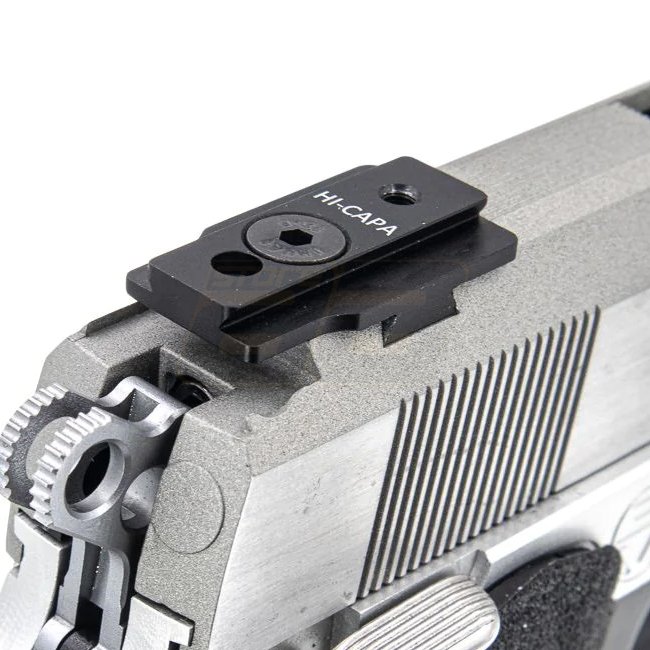 C&C Tac Marui Hi-Capa 5.1 RMR Ready Sight Set Adapter Plate Mount - Black: S304 stainless steel & aluminum material, anodized, RMR footprint, front & rear fiber sights, suitable for Marui Hi-Capa.