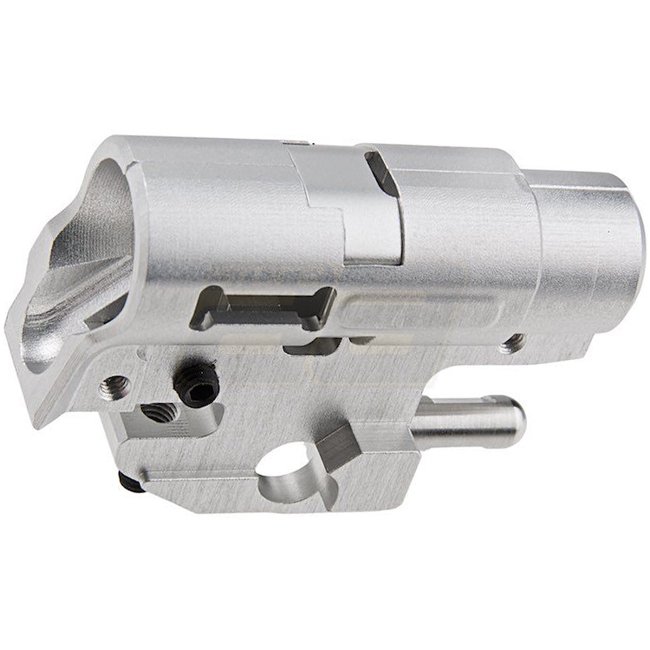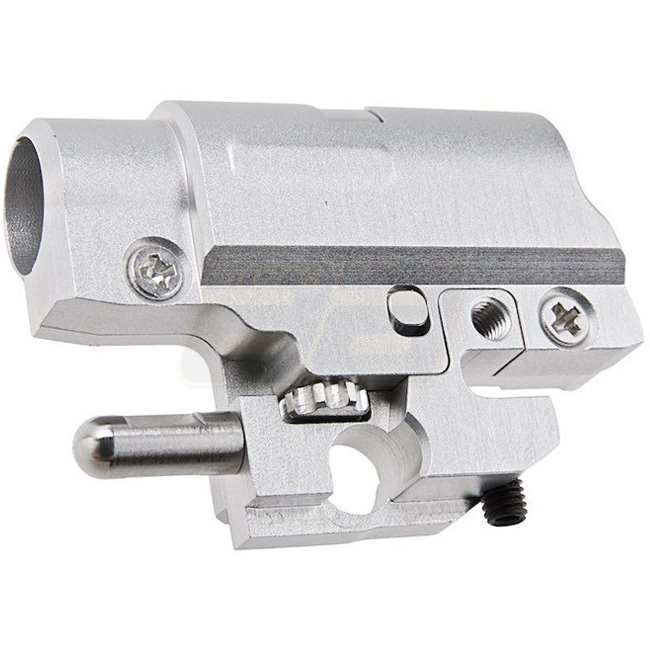 Upgrade your Marui Hi-Capa GBB with this new gen Hop-Up chamber in sleek silver aluminum. Improved performance with only 10g weight.