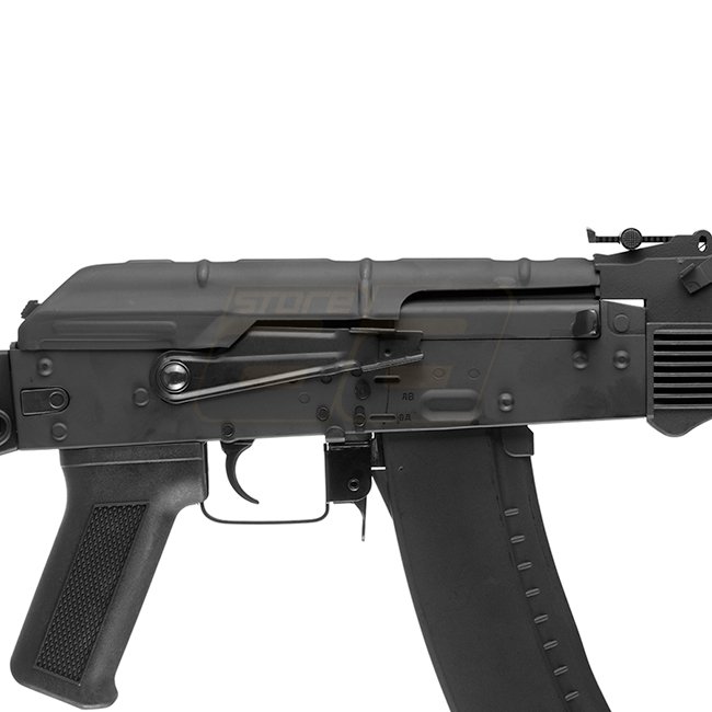 Cyma AK105 CM031D AEG is a powerful airsoft rifle designed for both Semi Auto & Full Auto shooting modes. It features a metal gearbox, long-type motor, and adjustable hop-up. Package includes gun and magazine.