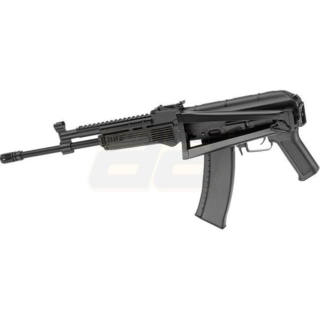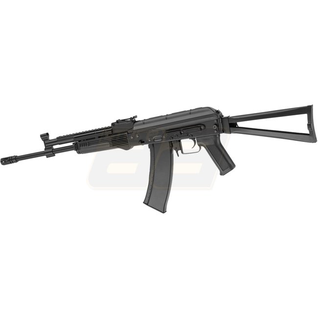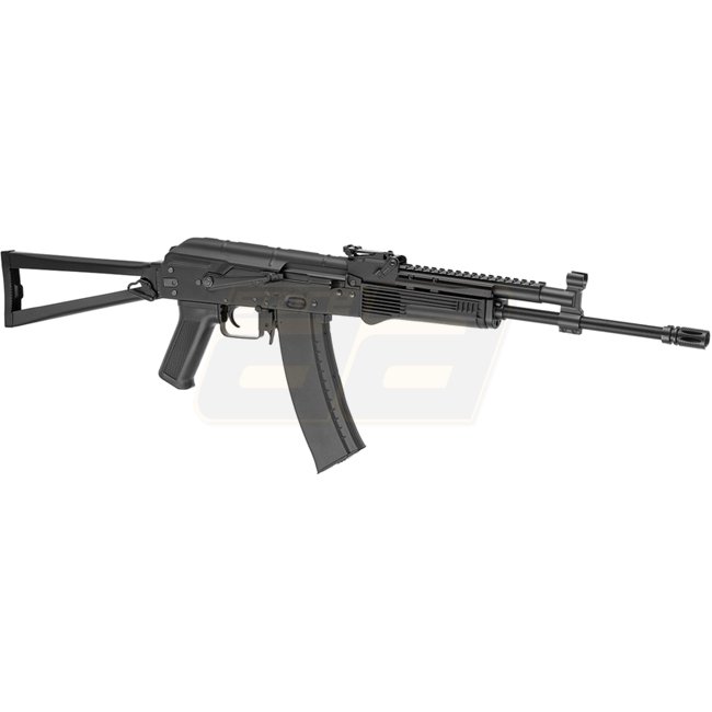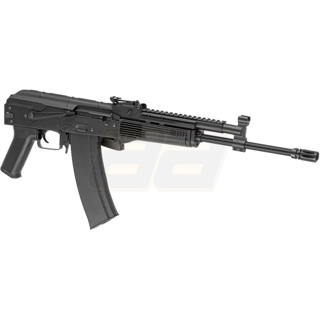 Cyma AK105 Tactical CM040J AEG is a robust airsoft rifle featuring full metal construction with a polymer stock and pistolgrip. It has a high magazine capacity of 500 rounds and a long inner barrel length of 450mm, ensuring accuracy at shooting ranges of