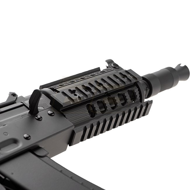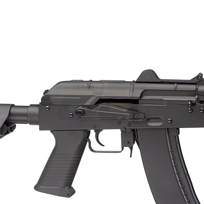 Cyma AK74U Tactical CM040H AEG is a high-quality airsoft gun with full metal construction and polymer stock. It features a gearbox of Version 3, long type motor, and adjustable hop-up system. This AEG has a magazine capacity of 400 rounds, shooting mode o