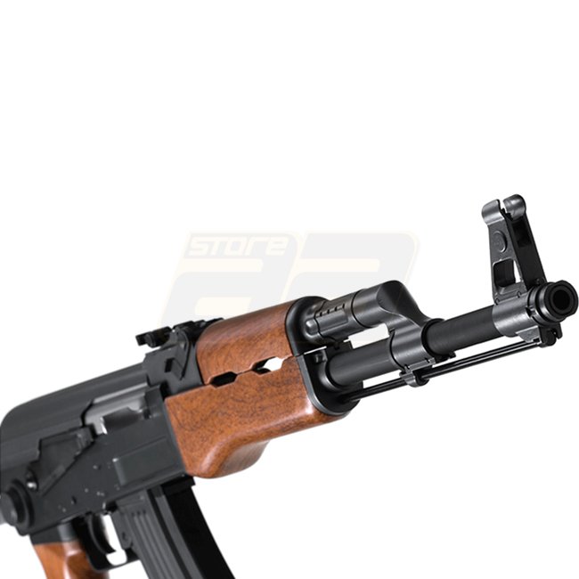 Cyma AKS47 CM028S AEG with 600 round magazine capacity and 360-380 FPS velocity. Adjustable hop up, Semi Auto & Full Auto shooting modes. Package includes gun and magazine.