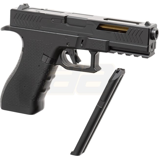 Cyma CM131 Advanced AEP - Black is a compact airsoft pistol that offers both Semi Auto & Full Auto shooting modes. With a magazine capacity of 30 rounds and an adjustable hop-up, it delivers reliable performance. This pistol measures 206mm in length, weig