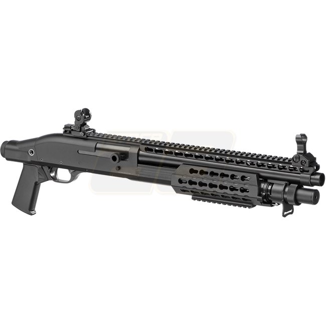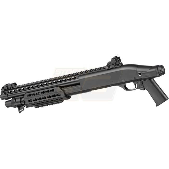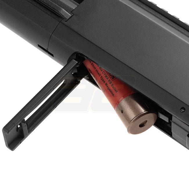 Cyma CM367 3-Shot Shotgun - Black, ABS plastic, 30 (6mm) Magazine capacity, 650mm Length, 1300g Weight, 300mm Inner barrel length, 330-350 FPS Muzzle velocity, 45.27-48.02m Shooting range, Fixed Hop Up, Package includes: Gun, 1x shell.