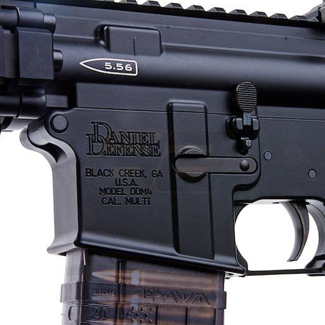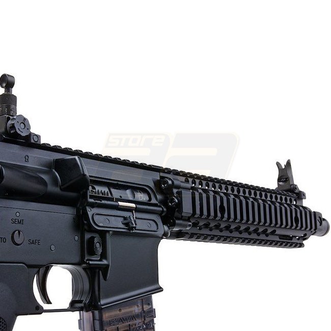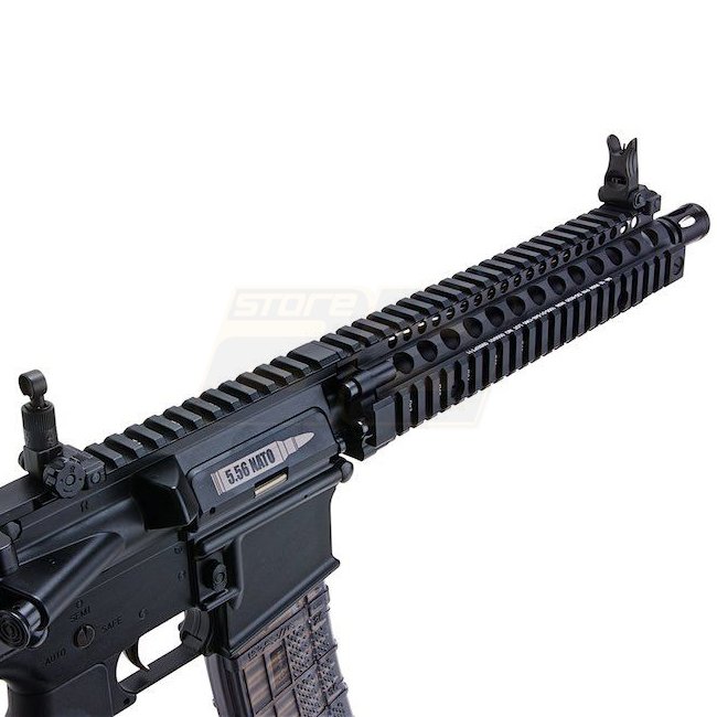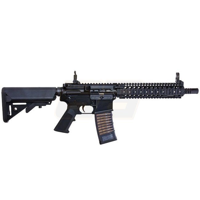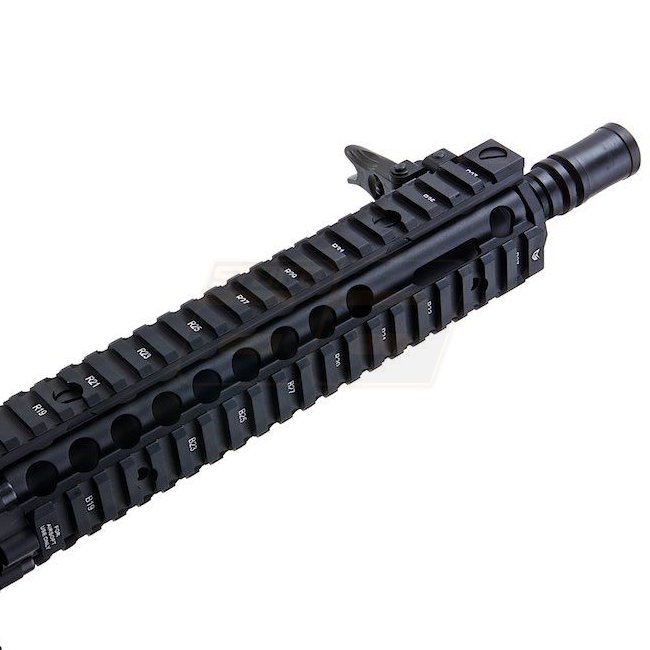 Cyma EMG Daniel Defense DD MK18 Gas Blow Back Rifle - Black. Metal / Polymer pistol grip, 30 round magazine, 700mm - 780mm length, 2791g weight, 260mm inner barrel, 14mm- / CCW muzzle thread, 350-370 FPS muzzle velocity, Semi Auto & Full Auto shooting mod
