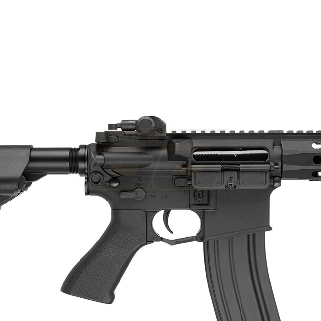 Cyma M4 CM621 AEG - Black. Gearbox: Version 2, MOSFET: Yes, Motor: Long Type, Magazine capacity: 300(6mm), Length: 740-820mm, Weight: 2200g, Muzzle velocity: 360-380 FPS, Shooting mode: Semi Auto & Full Auto, Shooting range: 49.39-52.13 m, Hop Up: Adjusta