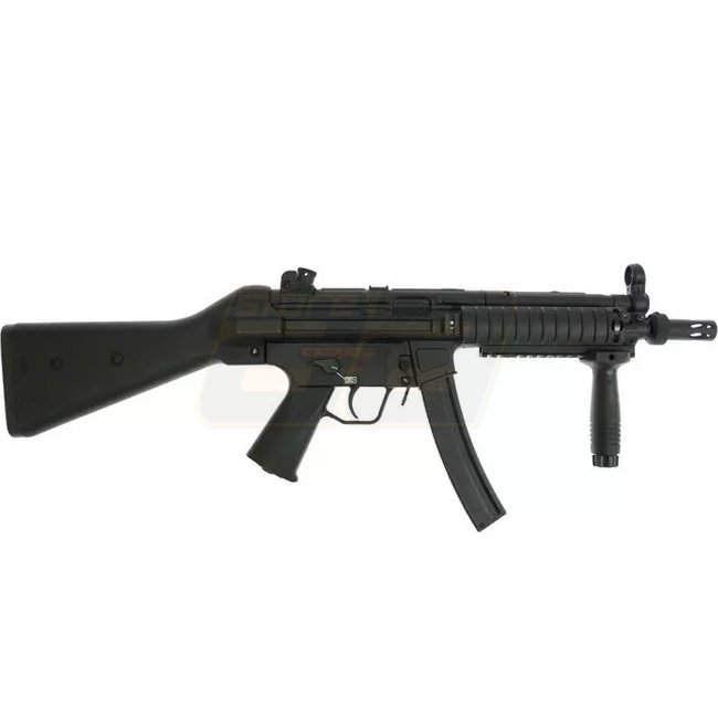 Cyma MP5 RAS AEG is a versatile airsoft gun with Version 2 gearbox, long type motor, and metal/plastic construction. Features 200 round magazine capacity, 715mm length, and 3040g weight. Ideal for both semi-auto and full-auto shooting modes, with adjustab