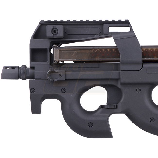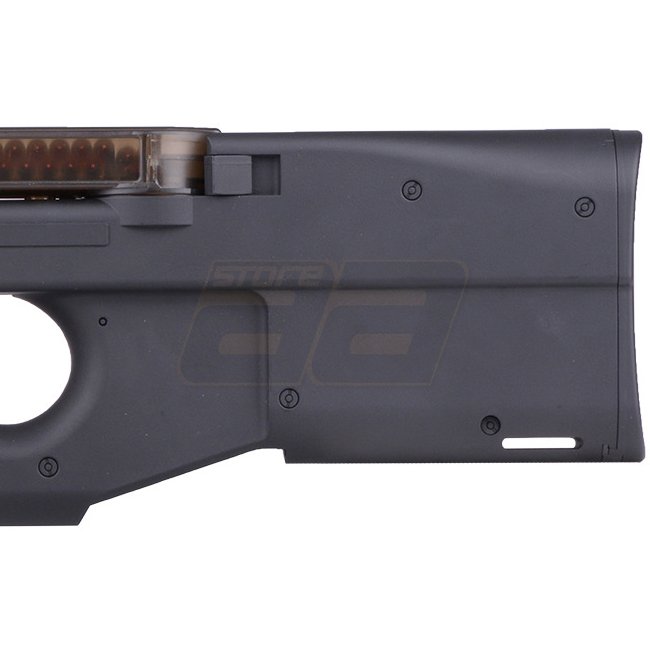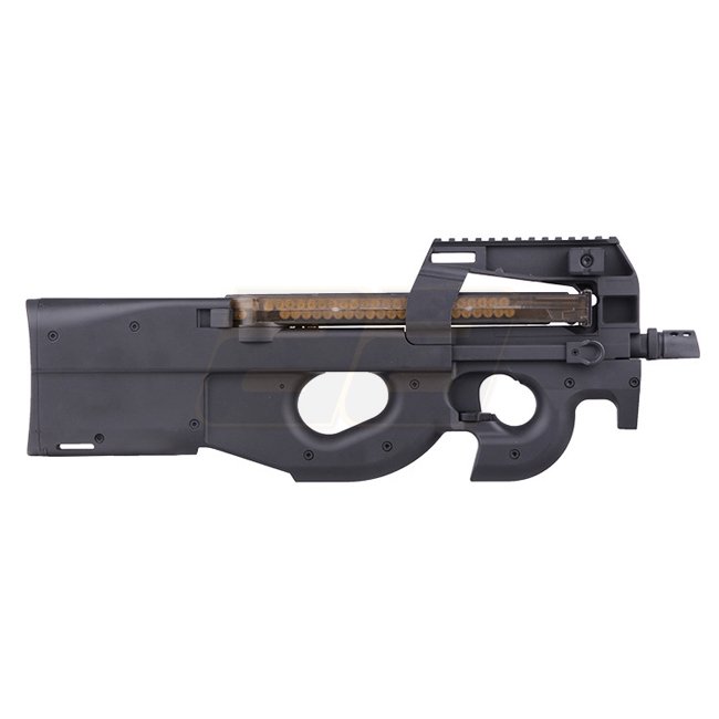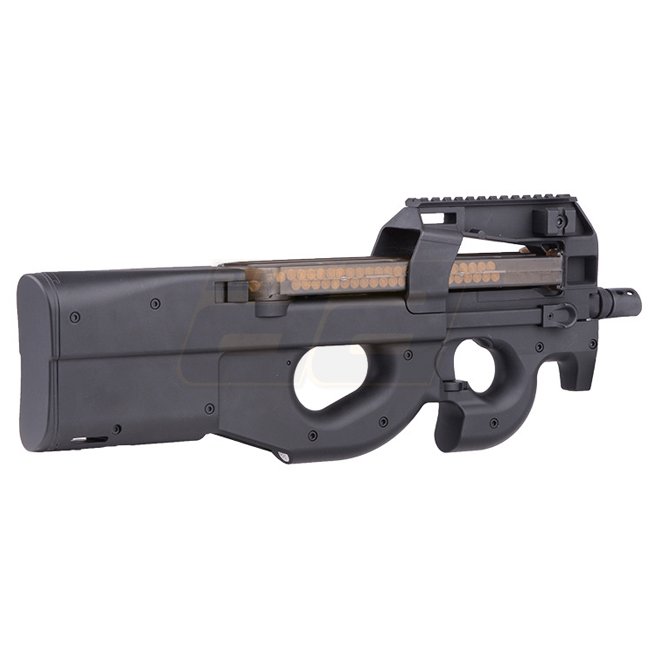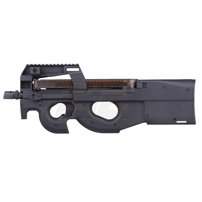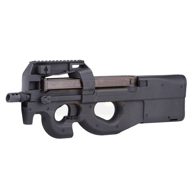 Compact and reliable Cyma P90 TR AEG features Version 6 gearbox, short type motor, and adjustable hop-up. Made with a mix of plastic and metal accessories, it weighs 2000g and measures 490mm in length. Capable of shooting at 380-400 FPS with a shooting ra