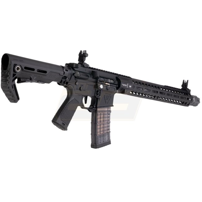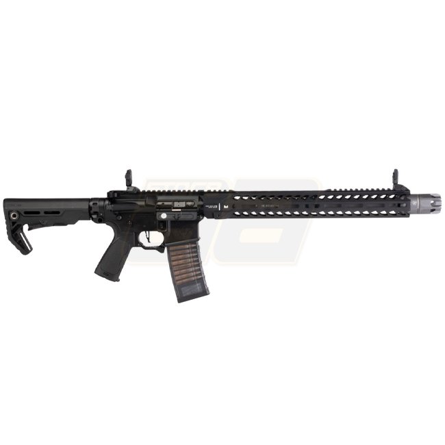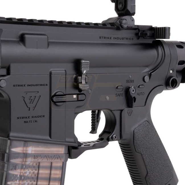 Cyma Strike Industries AR Strike Raider Gas Blow Back Rifle 15.5 Inch - Black. Long AR-15 with M-Lok compatible Gridlok handguard featuring fully licensed Strike Industries equipment.