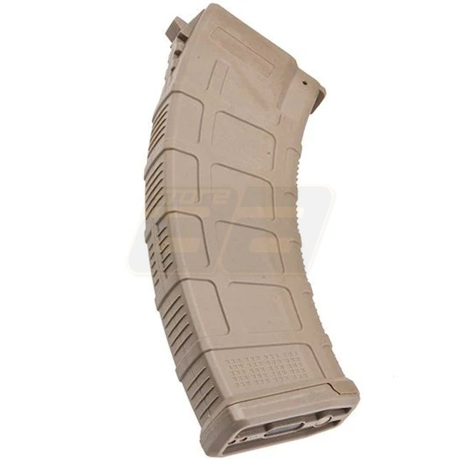 D-Day AKM 30/135rds AEG Magazine - Tan. This tan-colored magazine is durable and efficient, holding up to 135 rounds. Compatible with AKM airsoft guns, it ensures smooth and reliable feeding during intense battles.