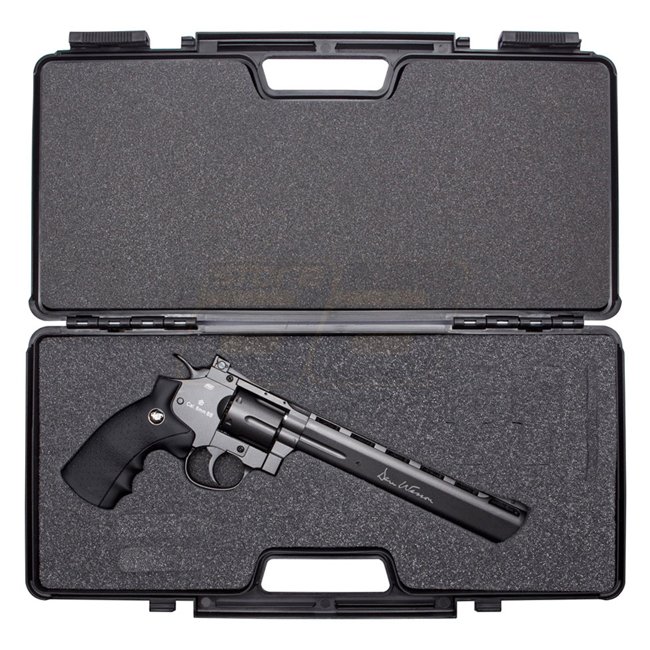This rugged black Dan Wesson pistol case provides scratch-resistant protection for all Dan Wesson revolvers. Foam cut-outs for revolver, speedloaders, CO2 cartridges, and extra bullets. Fits all Dan Wesson Airsoft revolvers. Dual slide locks & steel hinge