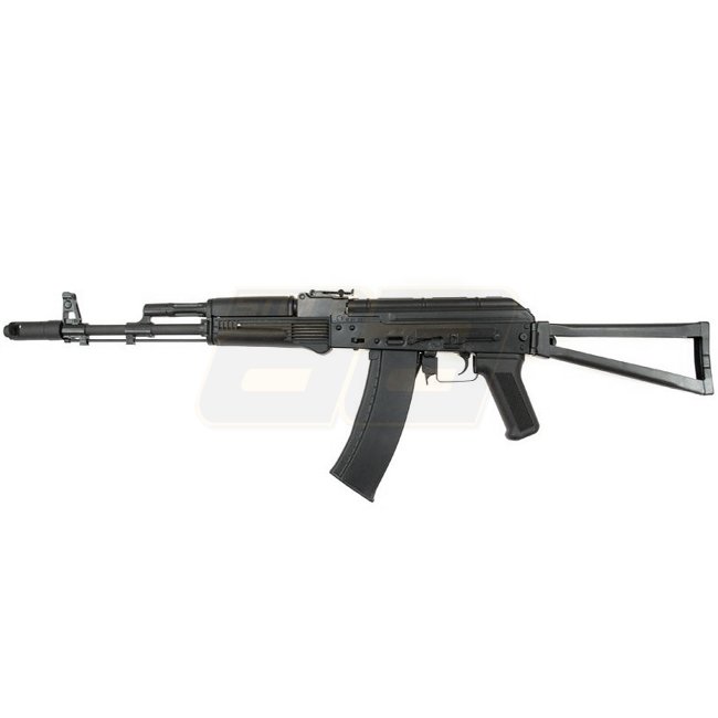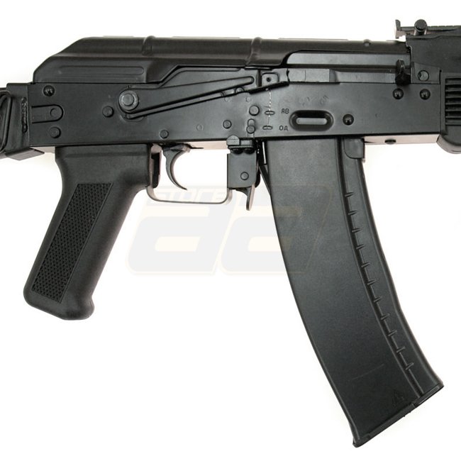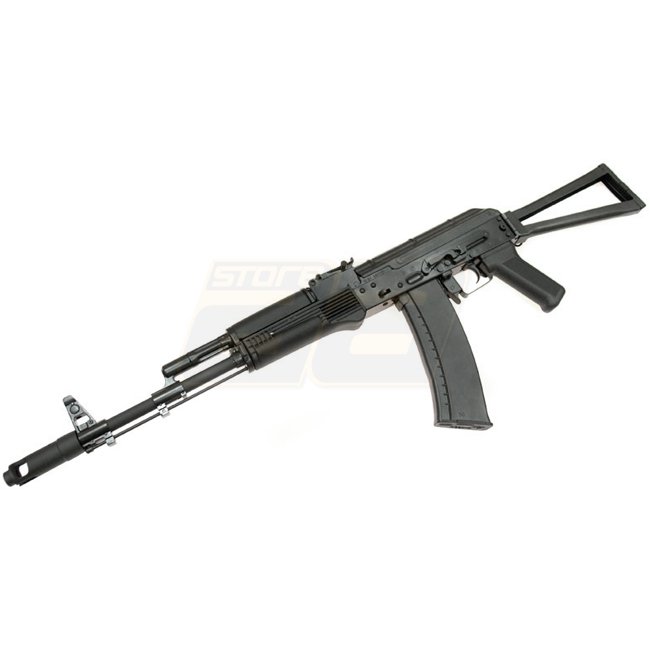 Dboys AKS-74N Full Metal AEG. Metal gearbox, semi-auto & full auto shooting modes, adjustable hop-up. Includes 500-round magazine. Length: 709/948mm. Weight: 2910g. Muzzle velocity: 380-400 FPS. Ideal for airsoft enthusiasts.