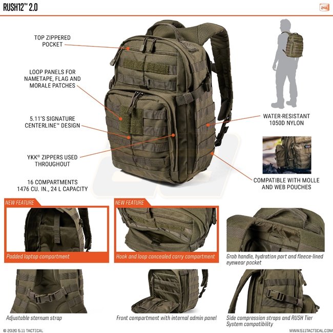 5.11 RUSH12 2.0 Rucksack — 24L Taktischer Daypack