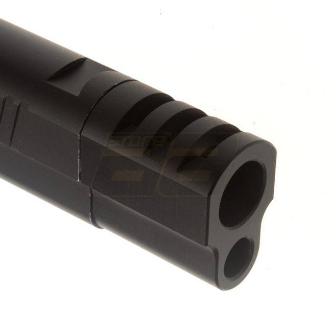 Der 5KU Punisher Compensator ist ein Drop-in-Zubehör für die Marui M1911 Serie. Durch das Entfernen der ursprünglichen Laufbuchse und das Hinzufügen dieses Aluminiumkompensators wird das Gewicht an der Vorderseite erhöht, um den Rückstoß von jedem Schuss auszugleichen, was Folgeschüsse viel einfacher macht.