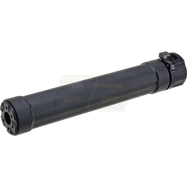 Der 5KU Ryder9 Schalldämpfer ist ein robuster Metall-Nachbau-Schalldämpfer für Marui- und VFC MP5-Gewehre, mit integriertem Mündungsfeuerdämpfer.