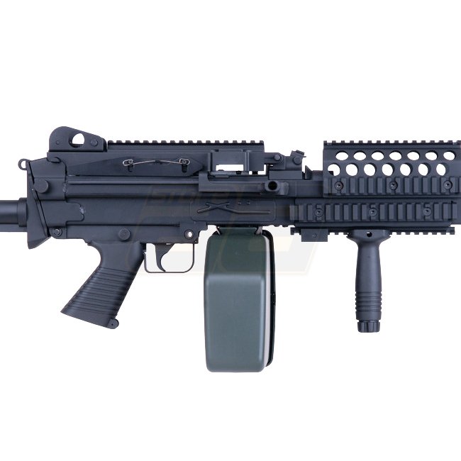 A&K MK46 Mod 0 AEG - Hochleistungs-Airsoft-Gewehr mit M249-Typ Gearbox, vollmetall Konstruktion mit Kunststoffgriff & Schulterstütze, 2400 Schuss Magazin Kapazität, einstellbares Hop-Up, Schussmodus in Vollautomatik, Schussreichweite von 49,39-52,13m, und