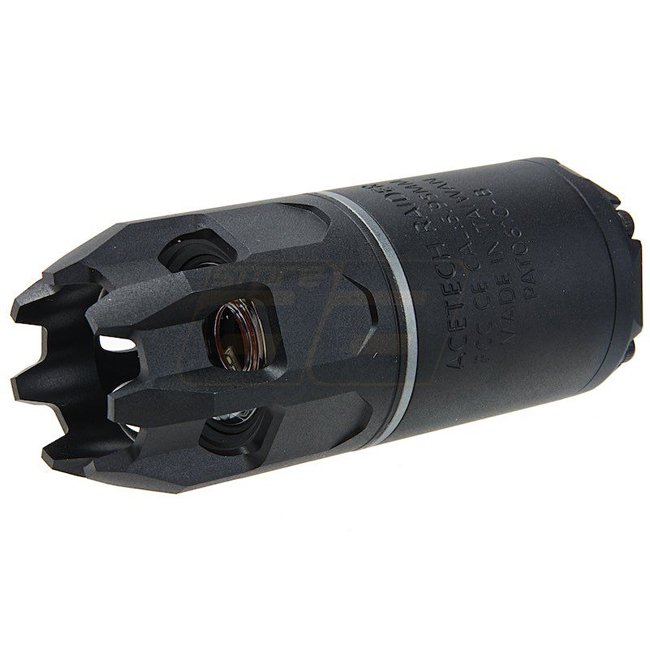 ACETech Raider Bifrost M Tracer Einheit - Schwarz. Simuliert Mündungsfeuer mit Flammeneffekt, kompatibel mit grünen BBs. Zwei Modi: Tracer mit 11 Farben und Scharfschützenmodus. USB wiederaufladbar, 14mm CCW Gewinde, 96mm Länge, 39mm Durchmesser.