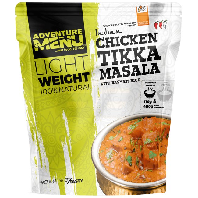 Inhalt: Hühnerbrust (30 %), gehackte Tomaten (20 %) (Tomaten, Tomatensaft, Zitronensäure), Basmatireis (16 %), Sahne (16 %), Joghurt (10 %)(Milch), Zwiebeln, Knoblauch, Butter (Milch), Olivenöl, Salz, Ingwer, Garam Masala, Kurkuma, Kreuzkümmel, Chili, gemahlener Koriander, Rohrzucker, frischer Koriander