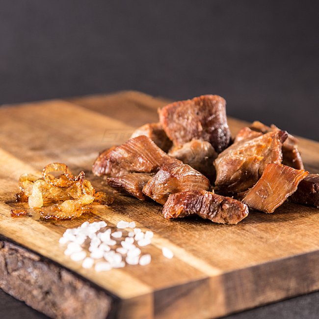 Inhalt: Putenfleisch (95%), Zwiebeln (4%), Salz, Pfeffer