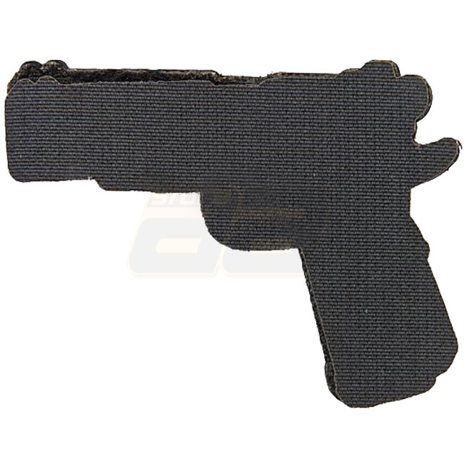 Ein pistolenförmiger, mit Klett versehener PVC Patch der Agency Arms x Nighthawk Custom Agent 2 Pistole. Die Details sind fantastisch präzise und das PVC Material ermöglicht es einem, Flecken und Staub problemlos abzureiben.