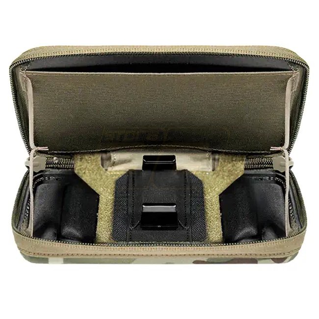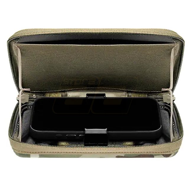 Die Agilite Battleshell Phone Pouch ist eine universelle Lösung zum Tragen jedes Smartphones oder elektronischen Geräts – mit oder ohne Schutzhülle. Sie lässt sich direkt an Plattenträgern, Chest Rigs oder jedem MOLLE-System befestigen und ermöglicht freihändigen Zugriff sowie klare Sicht auf das Display während des Einsatzes. Die thermogeformte Konstruktion schützt zuverlässig vor Stößen, während die angewinkelte Position einen ungestörten Zugriff auf Magazine ermöglicht. Die bewegliche Befestigung verhindert unbeabsichtigtes Drücken von Tasten und erlaubt einhändiges Öffnen und Schließen. Weitere Merkmale sind zwei Kabeldurchlässe, ein Innenfach für Dokumente sowie eine Klettfläche für Patches oder Kennzeichnung.